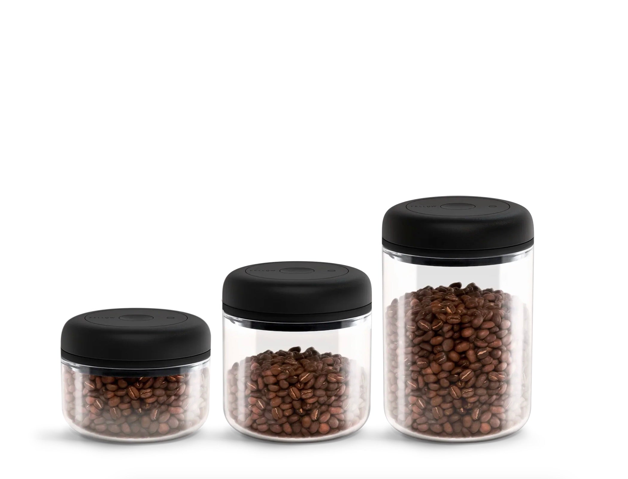 Keep your coffee and snacks fresher longer! This airtight canister features a vacuum pump lid to remove air and reduce oxidation. Available in 3 sizes.
